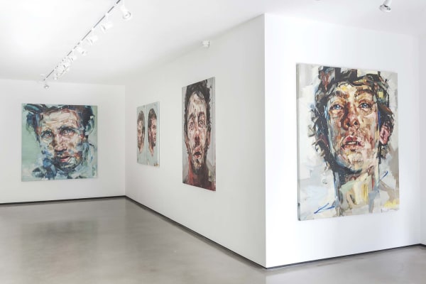 Not surprisingly, however, things have moved on since the 17th century. The paintings are all heads, tightly cropped, not full length or half-length figures in the manner of Baroque portraiture. The focus is not only on the depiction of psychological states, but on the extreme rapidity with which the states can sometimes alter, like the shadows of clouds passing over a summer cornfield.