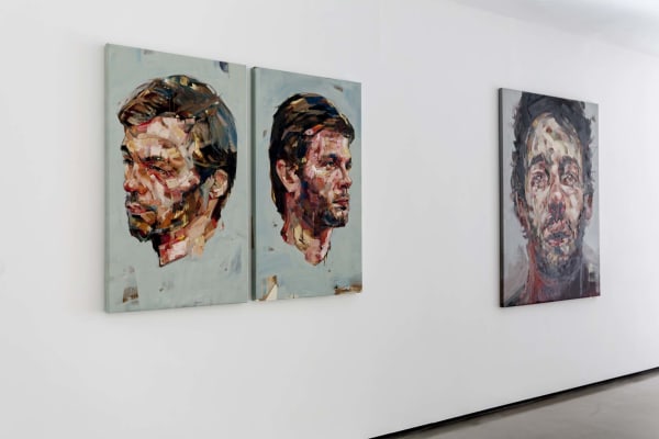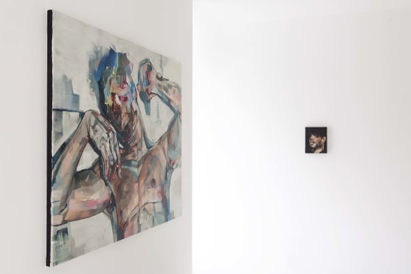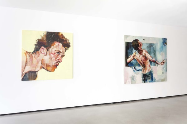 At my core I feel more like an abstract artist than a figurative artist; I avoid adhering too closely or exclusively to any term because I believe it whittles what I do to something one-dimensional, didactic, in the sense that I’ve always felt it too superficial to simply aim for likeness in representation. In this regard, it’s important for me to question the nature of the painted image, the figure, and also those concepts not-so-visibly evidenced such as masculinity, sexuality, and identity. I suppose that the way I go about drawing attention to this is by loosening the grip on accuracy; I want the viewer to be aware that they are looking at a reconstruction – a mark of paint might vaguely (or not so vaguely) represent an eye or the tip of a nose, but it also exists purely as a mark of paint, nothing else and nothing more. It is this duality of forms that I believe allows me (and hopefully the viewer) to question the painted image. In that act of questioning, the entire figure becomes questioned. For me, the fact that I don’t implicitly ‘buy in’ to the image on the canvas and am concerned about its (de)construction, prevents the work from becoming too solipsistic, self-indulgent, or banal. I like to keep things uncertain: the form, the concept, the figure itself… this is the only way my viewer is going to approach my work with an open mind and leave with their own conclusions.
