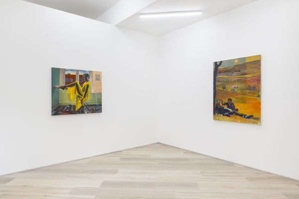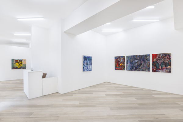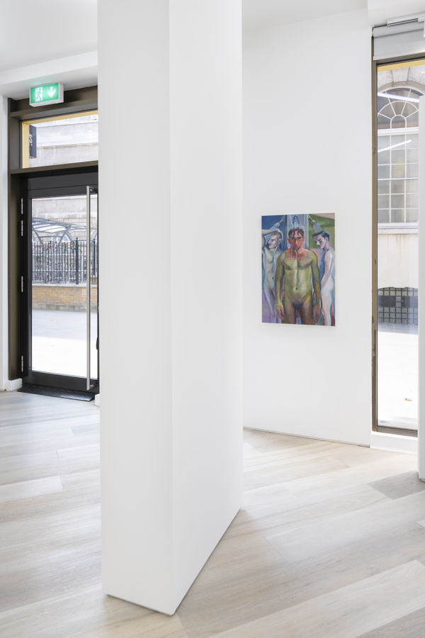 In many ways, British artist Adam Baker's debut exhibition at BEERS London is about searching for meaning through moments of intimacy. These imagined snapshots of queer life and love depict different ways in which we pursue meaning and purpose in our lives, through hedonistic pursuits or the quiet closeness of reading a book, Baker states his paintings are a form of therapy, bridging the gap between his goals as an artist, and those of a young gay man living in the big bustling city of London.