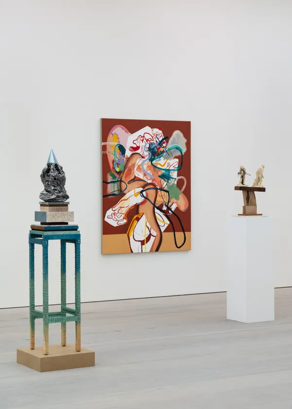 BEERS London is proud to present painter Andrew Moncrief alongside sculptor Sebastian Neeb at the Saatchi Gallery in an exhibition exploring the deconstruction of meaning, materiality, and message. Both artists adopt a wry sensibility to deconstruct the conventions of their chosen subject matter and artistic discipline.