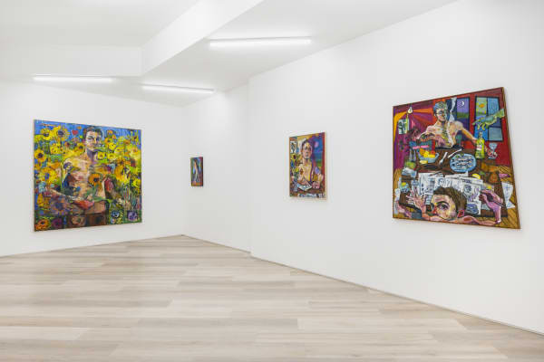 Andrew Salgado returns to BEERS for his fifth solo show with the gallery, following both 2020’s Strange Weather and 2016’s The Snake. The new body of work, entitled A Never-Setting Sun, is both a critical look at the creative process, as well as a deep-dive into various themes of interest to the artist.