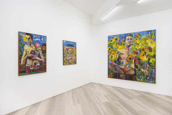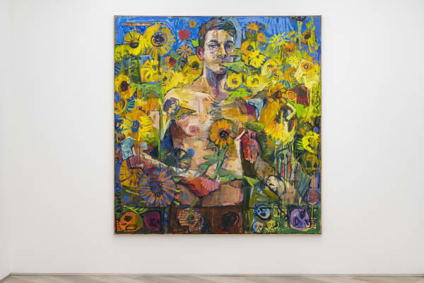 “Life can only be understood backward, but it must be lived forwards,” Søren Kierkegaard stated in the mid-19th century, suggesting that existence can never be fully understood. While encompassing the hopelessness of the situation, the Danish philosopher did leave just enough room to consider chronicling one’s time in the hope to contribute to this lost cause. And one of such efforts, Derek Jarman’s meditative and stimulating diary Modern Nature, is quoted as the direct source of inspiration for Andrew Salgado’s latest body of work comprising Never-Setting Sun. The poetic title is referencing the infinity of time in which we’re given a tiny moment to experience everything we recognize as a lifetime, as well as suggesting the positive, sun-lit ambiance which permeates the energized imagery. Besides the obvious tributes to the English film director, stage designer, author, and gay rights activist (Modern Nature, A Chrysthanthemum For Derek Jarman, both 2022), the Canadian-born artist who is currently also experimenting with the written word format, is channeling Jarman’s contagious urge for deliberate acts of love and appreciation.