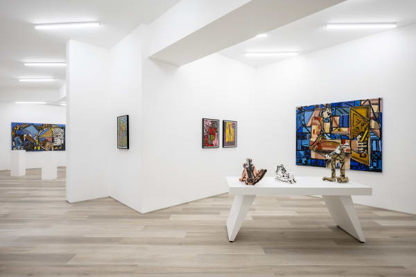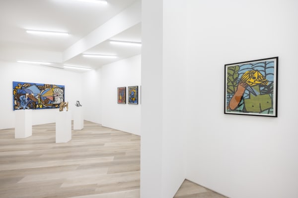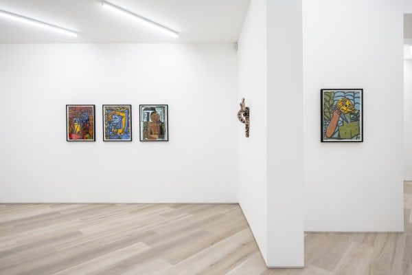 In his first gallery solo, entitled Human Gardens, Daiber presents paintings, works on paper, and sculptures that seem to question the very nature and desire of our existence. At this point, it seems almost trite to state that any creative works have arisen as a result of mid- or post-pandemic society, but the reality is that this context is inescapable and inevitable. In 2021 the artist and his family moved to Aschersleben, Germany, for a residency. For three months his life (and that of his wife and child) were limited to his work in the residency studio. This idea of confinement, estrangement, and even confusion seems to enfold and form the very existence of these works.