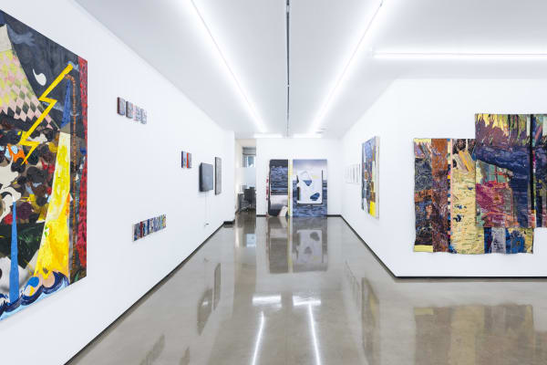 Stamatis Papazoglou works with traditional paints and spray paints to create sometimes spontaneous sometimes planned concepts on paper. Those are then collaged onto a specific surface and reapplied with changed qualities by cutting, tearing and readjusting. Final material layers are then manipulated through flex and sanding machines, high pressure cleaners and knives until the process of construction and deconstruction develops its own momentum in an organic nature allowing Papazoglou’s works to emerge completely free and radical in their own moods and compositions.