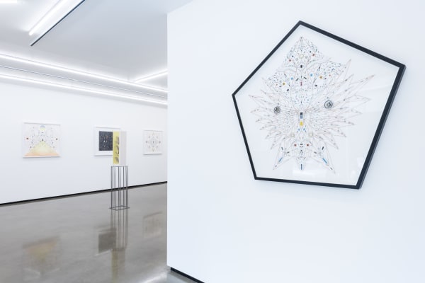 Ulian’s newest work displays a desire to represent that which is hidden from the literal meaning attributed to objects or to identify the world around us. The result is a new visionary representation, a daydreaming fantasy made by the connection of geometric forms and the hidden syntax of the archetypes, that are the bases of the imaginary and dreamlike word of the artist.