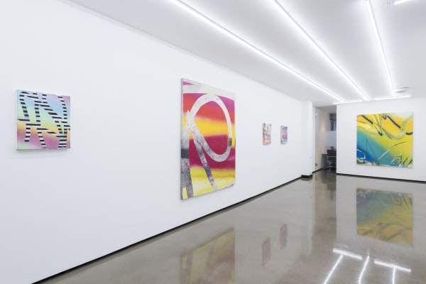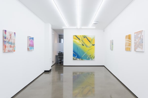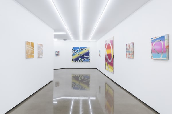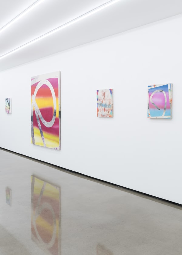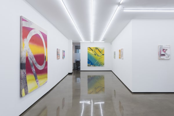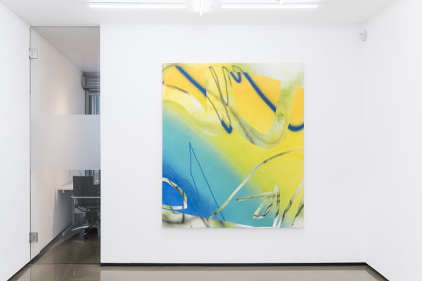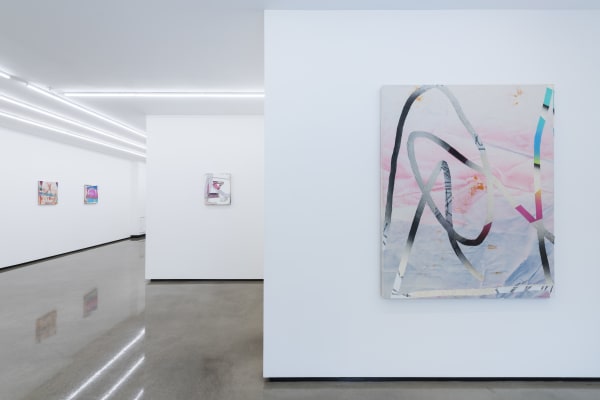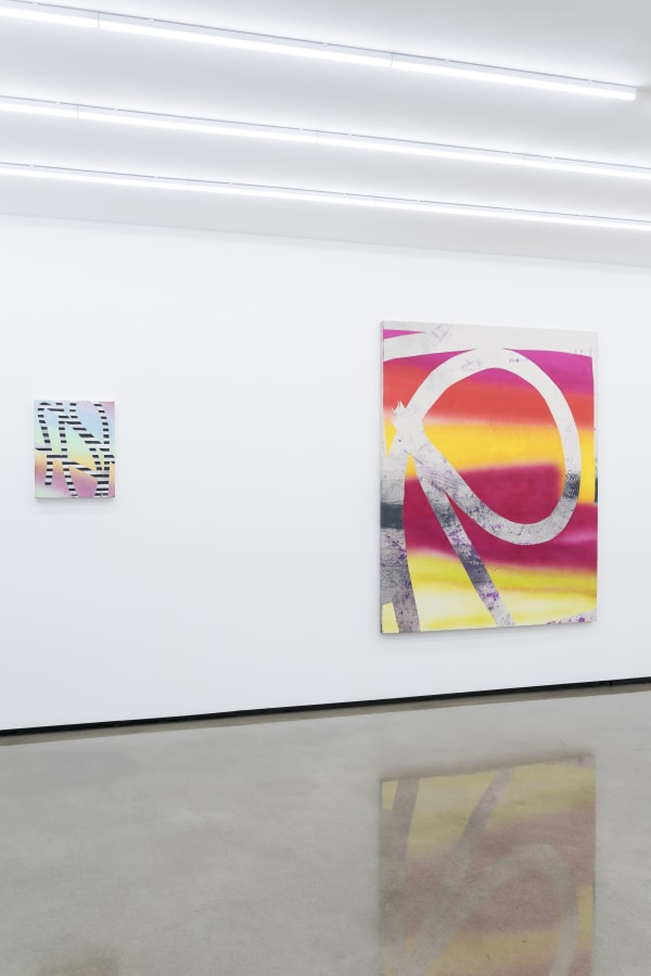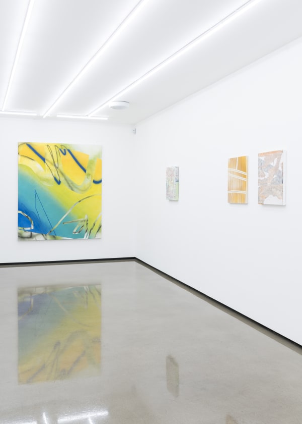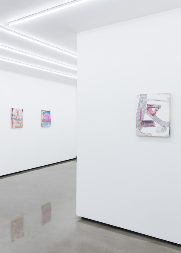 With a background in architecture, Freeman’s paintings are informed by the language of architecture and the use of digital design tools as a preliminary means to explore the action of painting and the painted surface itself. Most of Freeman’s paintings begin as sketches made on a computer screen or tablet. With the use of her fingers and sometimes a stylus, she gesturally creates compositions using layers, eraser tools, and imported imagery. The small scale of these initial digital sketches (created using a tablet in a similar vein to David Hockney’s iPad drawings) heavily influences the composition, which she then relays onto a physical two dimensional plane. Of great interest to her is the absurdity and uncertainty of translating these preliminary digital sketches into physical objects.
