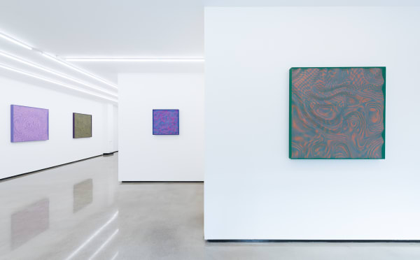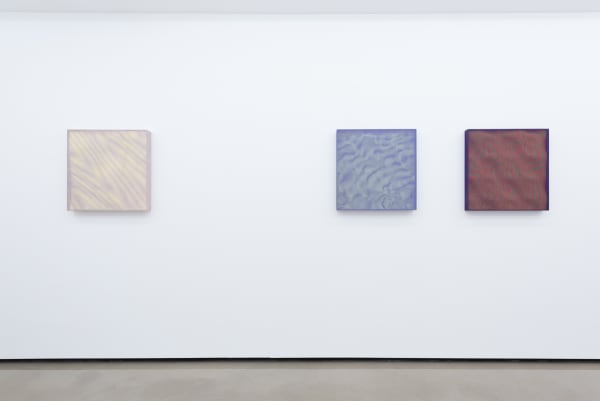 The mesh works are visual recreations of the idea of light as both wave and particle. They are simultaneously sculpture and two-dimensional, and their sculptural forms derive from noise generation algorithms such as Perlin Noise[ii], and recall TV-screen static, or the visualisation of white-noise. With these artworks, their appearance with layers of obscuring acrylic mesh, yields an optical illusion that plays a trick on the viewer, as a static object appears to pulse and dance. It is a process of understanding, in two-dimensions, the infinitesimal values and landscapes of the cyber-age. In many ways, these are interactive works of art, requiring only the most basic interplay in order to activate their grand feat. It is a magician’s work: simple movement that results in observational trickery.